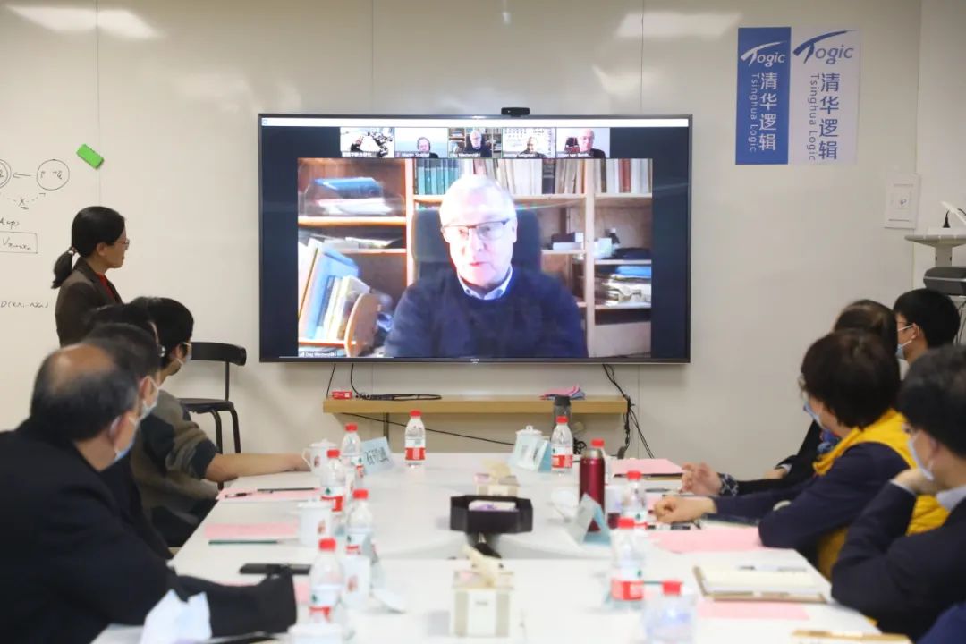 逻辑学中心主任、人文学院哲学系教授刘奋荣介绍了中心基本情况。金岳霖讲席教授团组的四位成员在线上参会。范丙申(Johan van Benthem)教授表达了他对清华大学、对中国的深厚感情,简要介绍了最近与清华学生合作论文的情况。司马亭(Martin Stokhof)教授希望通过对学生的培养使清华大学在逻辑学这一重要领域取得长足发展。谢立民(Jeremy Seligman)教授简要介绍了《中国逻辑思想史手册》项目的编纂工作。魏达格(Dag Westerstahl)教授回顾了自己在疫情期间克服诸般困难,顺利完成在线教学的经历。四位教授都表示,他们都十分想家,想念清华园。他们希望疫情过去,能够早日回来,与学生和同事见面。